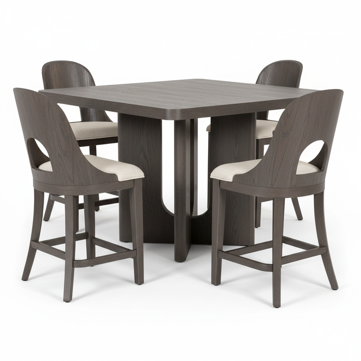 The Alsen 9-Piece Counter-Height Dining Set is a bold modern dining solution designed for larger spaces and elevated entertaining. Finished in a sophisticated ash gray tone, this collection combines clean architectural lines with refined material layering for a contemporary presence.
