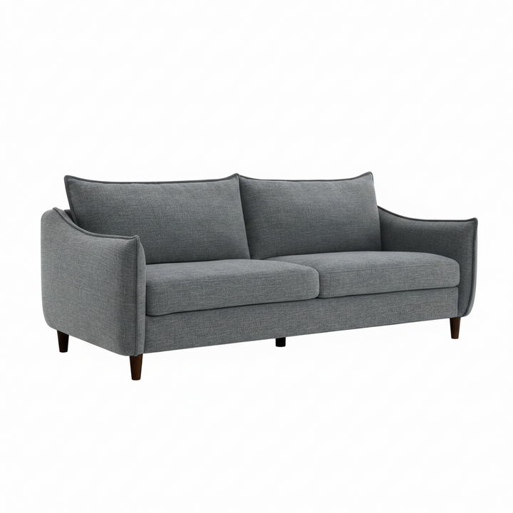 The Elinor Sofa showcases contemporary refinement with a streamlined silhouette. Upholstered in soft gray chenille (100% polyester fiber), the design features skinny slope arms finished with subtle flange trim for a tailored, modern look.