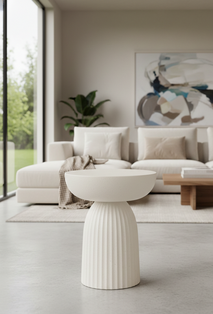 Sculptural side table with minimal Nordic styling
