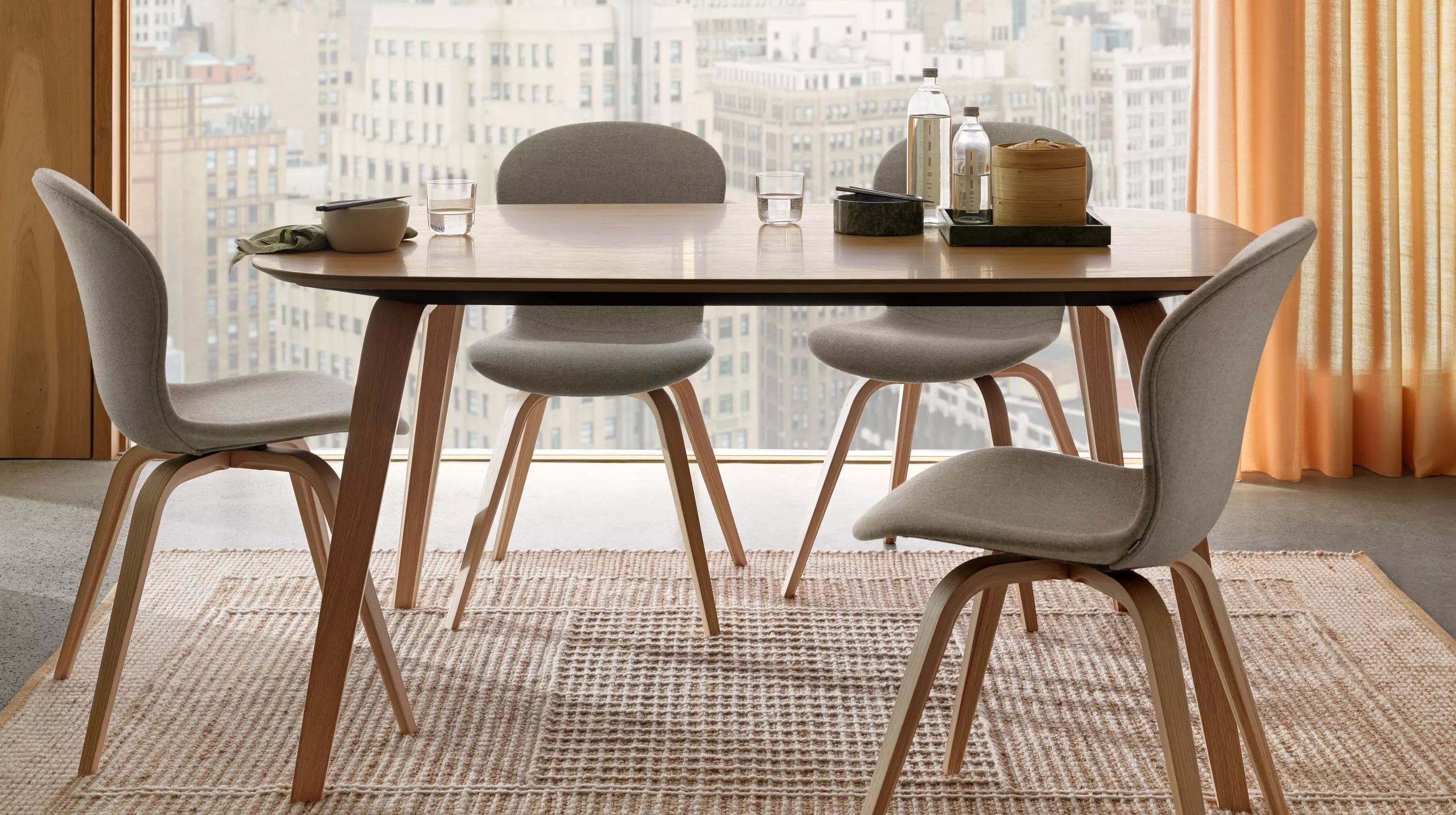 Designed for flexibility, the Hauge dining table features a concealed extension leaf stored neatly beneath the tabletop. Thanks to its integrated extension mechanism, a single person can extend the table quickly and smoothly, transforming it from an everyday dining surface into a spacious table for guests—without disrupting its clean design.