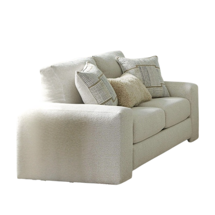 The Lysa Loveseat delivers the same inviting softness and contemporary warmth as the Lysa Sofa, reimagined in a more compact scale for intimate seating arrangements. Upholstered in a plush chenille fabric with soft cream and beige undertones, it brings tactile comfort and relaxed elegance to modern living spaces.