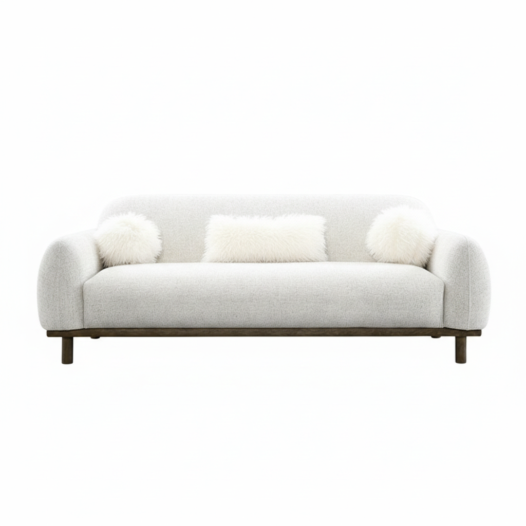 Pocket coil spring construction ensures ergonomic support, and included faux fur accent pillows enhance both style and comfort. Designed for interiors that prioritize texture, proportion, and European-inspired sophistication, this sofa is a statement piece that balances form and function.