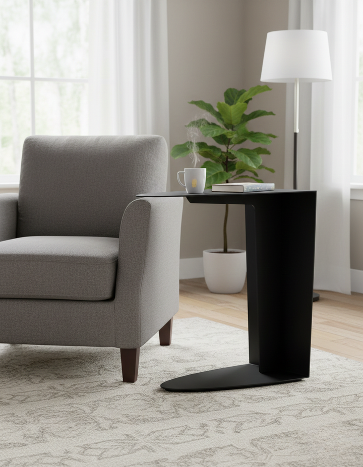 Designed with practicality in mind, the table provides a stable surface for daily essentials while maintaining a lightweight, architectural presence. The powder-coated finish adds durability and resistance to wear, ensuring the table performs as beautifully as it looks in modern interiors.