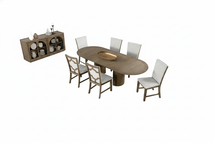 The Fjor 7-Piece Extendable Dining Set delivers a warm, modern farmhouse aesthetic defined by natural oak tones, architectural detailing, and everyday functionality. Designed for gathering, this collection blends traditional farmhouse cues with clean, contemporary proportions.