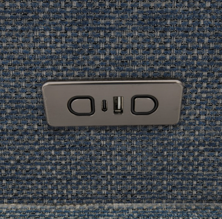 Integrated USB-A and USB-C charging ports are located conveniently along the inside arm, allowing you to power up without disrupting the flow of the room. No unsightly power strips. No compromises.