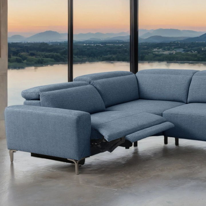 Each powered seat features smooth, whisper-quiet motion that adjusts at the touch of a button—elevating legs and extending the back in one seamless, fluid movement. The adjustable headrests tuck cleanly away when not in use, preserving the sleek lines and keeping visual noise to a minimum.