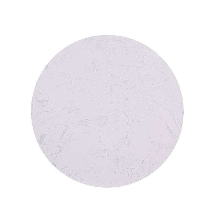 This elegant contemporary dining set blends modern form with refined details, making it a striking addition to compact dining or accent spaces. The engineered stone tabletop offers a sleek, durable surface, while the sculptural metal tulip base is finished with a refined gold tip for a touch of luxury. Complementing the table, the two chairs feature curved arms and subtle gold accents, delivering both comfort and visual sophistication.