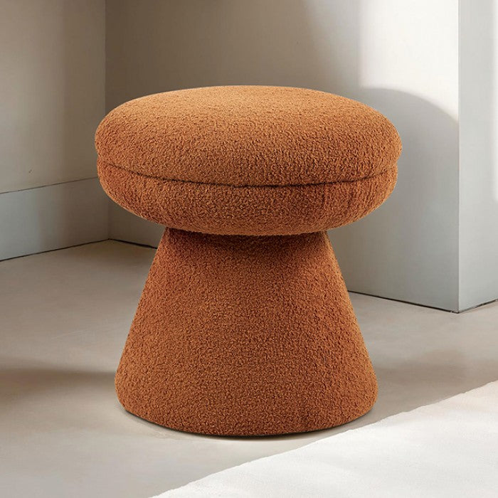 The Valleroy Mushroom Stool in Saddle Brown blends sculptural charm with soft, inviting texture. Upholstered in plush shearling teddy-like fabric, its rounded mushroom-shaped top sits securely on a pedestal base, making it both a stylish and practical accent. Ideal as a stool, footrest, or decorative element, it adds warmth and Scandinavian-inspired appeal to any living space.